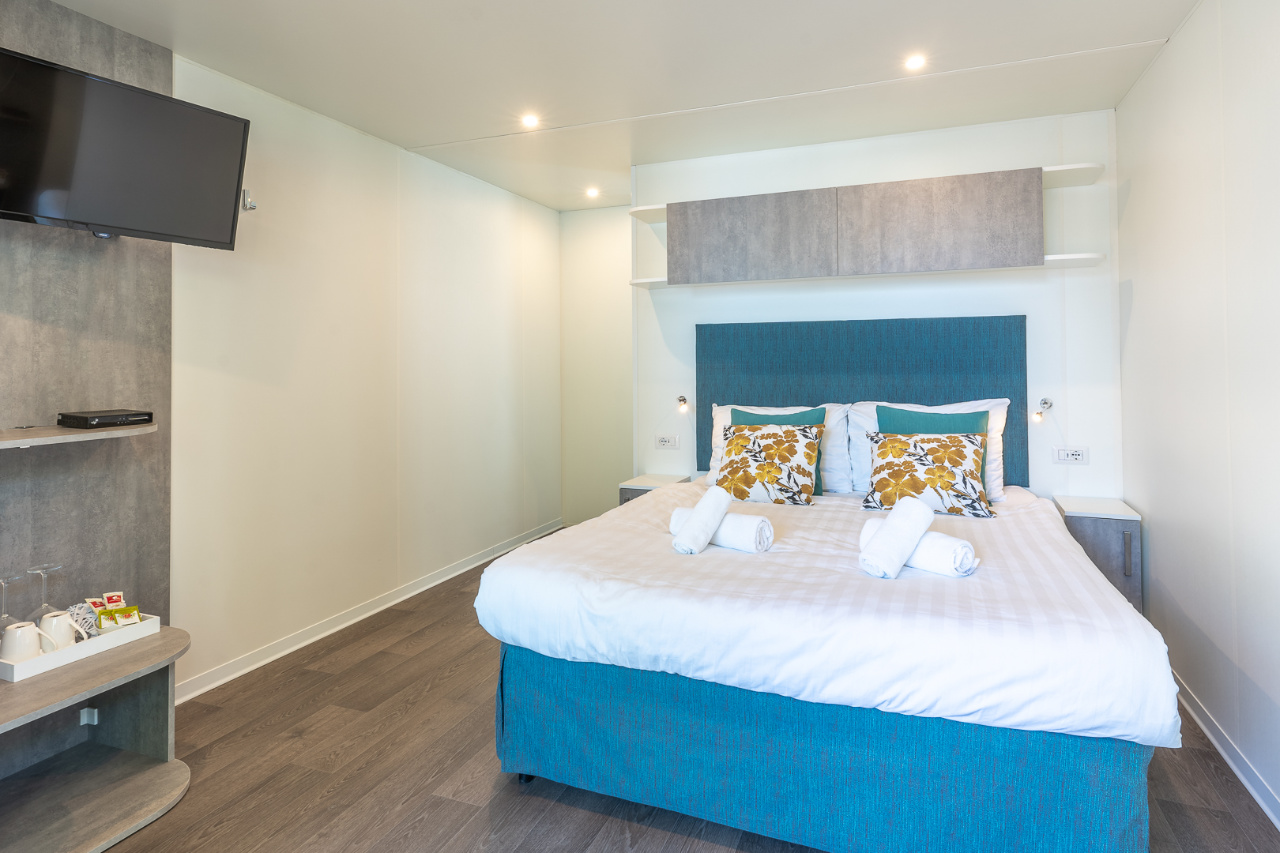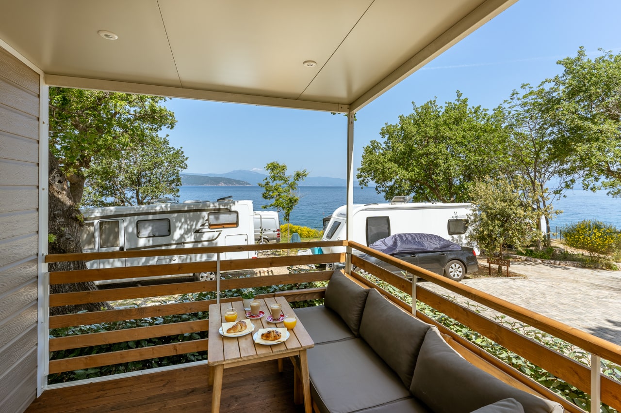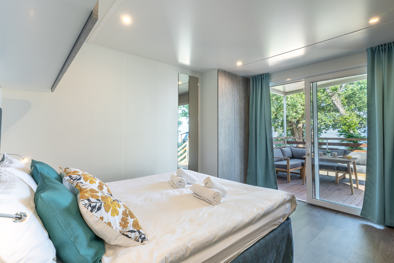 Ogni casa mobile dispone di una moderna camera da letto e bagno, oltre a comfort aggiuntivi come aria condizionata e una terrazza accogliente con mobili da esterno – il luogo perfetto per ammirare tramonti indimenticabili.